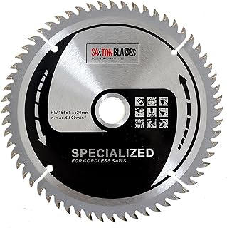 Saxton Kreissägeblatt für Akku-Kreissägen, 165 mm Durchmesser, 60 Zähne, TCT, schmale Schnittfuge, für Dewalt, Makita, Ryobi, Bosch