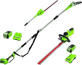 Greenworks Hochentaster und Teleskop-Heckenschere 2in1 G40PSH und Akku-Heckenschere G40HT (Li-Ion 40V 20cm/51cm/61cm Schwertlänge 240cm Teleskopstange mit 2x2Ah Akku und 2 Ladegeräten)