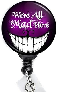 Halloween Alice im Wunderland Grinsekatze "We are All Mad Here", einziehbar, mit Schwingclip und 91,4 cm Kordel.
