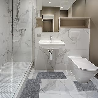 Badvorleger, rutschfeste Badematte, Badematten-Set 3 Stück absorbierende rutschfeste Badematte Toilettenvorleger Badvorleger für Bad, Schlafzimmer, KücheKit 40×60+50×50(U)+50×80 cm (Grau)