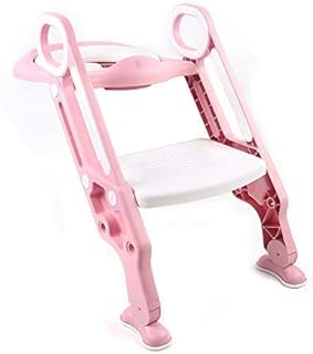 Toilettentrainer Kinder-Töpfchen Toilettensitz Trainer Sitz mit Treppe für Kinder Lerntöpfchen Toilettensitz Rutschfest stabil klappbar und höhenverstellbar (Pink + Weiß)