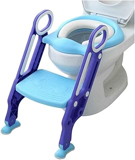 NAIZY Toilettensitz Kinder mit Treppe Faltbar Töpfchentrainer Höhenverstellbar WC Trainer mit PU Gepolstert Kissen und Griffen Töpfchen für Kinder von 1-7 Jahren Kleinkinder - Blau und Lila