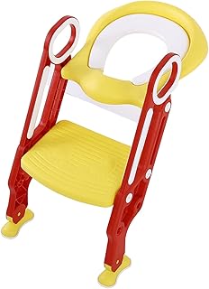AYNEFY Toilettensitz Kinder mit Treppe Töpfchen Toilettentrainer Faltbar Toilettensitz Verstellbarer Toilettenaufsatz Rutschfest Toilettenstuhl mit Höhenverstellbarer Leiter und Griffen, Rot & Gelb